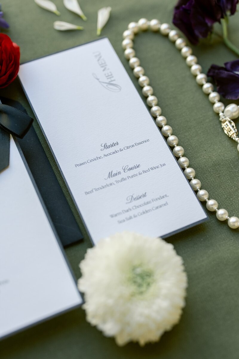 – On the wedding day: menus, place cards, guest gifts, thank-you notes.